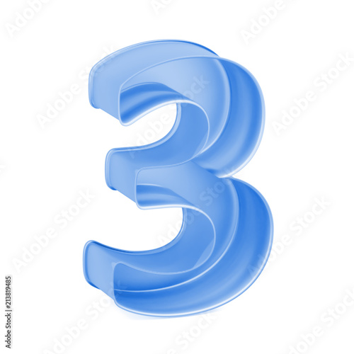 © Serhii Shcherbakov, Naklejka premium Blue baking cake pan, cookie cutter or toy mold like mathematical digit 3 or Three one on white background, 3D rendered font image
