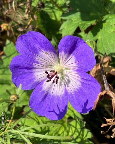 © Ilvira, Obraz premium Blue beautiful geranium flower bloom