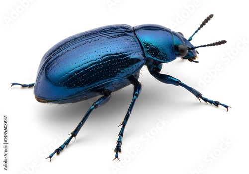 © Nea, Fototapeta premium Blue beetle shiny skin set against isolated white background