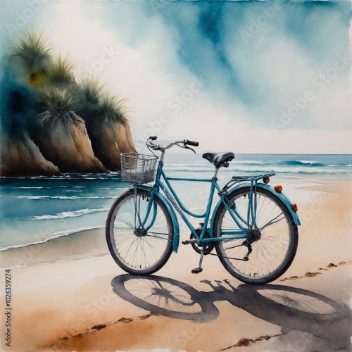 Fototapeta premium blue bicycle on the beach