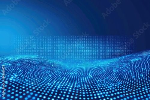 Obraz premium blue binary code digital landscape with dots wave abstract futuristic...