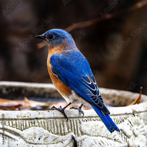 Naklejka premium Blue Bird on a Bath