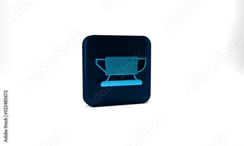 Fototapeta premium Blue Blacksmith anvil tool icon isolated on grey background. Metal forging. Forge tool. Blue square button. 3d illustration 3D render