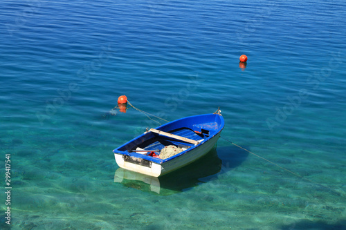 Fototapeta premium Blue boat in Adriatic sea