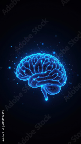 Fototapeta premium Blue brain graphic with abstract elements symbolizing artificial general intelligence or AI development.