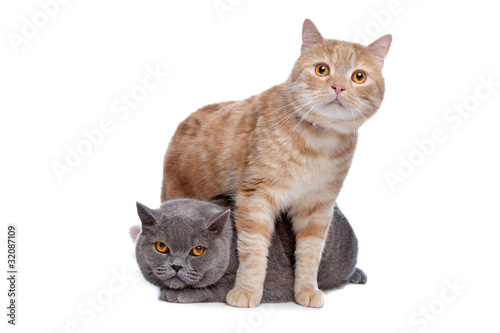 © Erik Lam, Obraz premium blue British Shorthair and a red maine coon cat