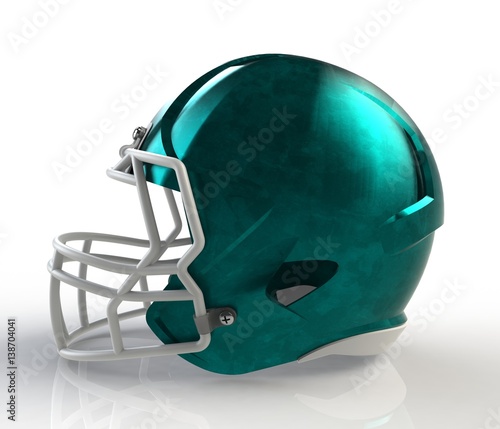 © krung99, Naklejka premium Blue brushed galvanized american football helmet side view on a white background with detailed clipping path, 3D rendering