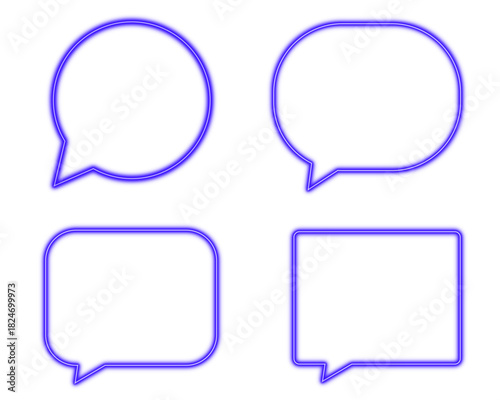 © iPood, Fototapeta premium Blue bubble speech round square neon light set shaped objects isolated on white background