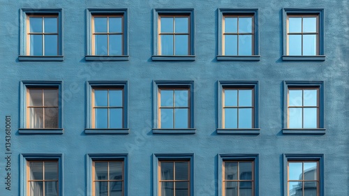 Fototapeta premium Blue Building Exterior With Repeating Windows Pattern