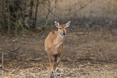 Obraz premium Blue Bull fawn, Boselaphus tragocamelus, Bandhavgarh Tiger Reserve, Madhya Pradesh, Rajasthan, India