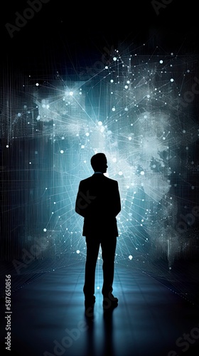 © W&S Stock, Obraz premium Blue business and technology background with a person and graphs. AI Generative Art.