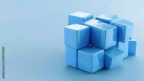 © 維聰 凌, Obraz premium Blue business background 3D cube technology