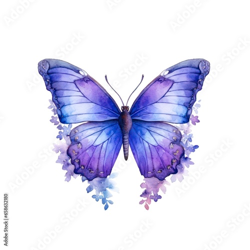 © Hanna, Obraz premium Blue butterfly isolated on white background in watercolor style.