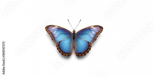 © AkuAku, Obraz premium Blue butterfly isolated on white background, suitable for nature-themed layout design, Earth Day