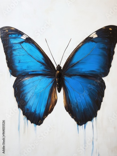 Fototapeta premium Blue butterfly oil painting on a white background showcasing the vibrant...