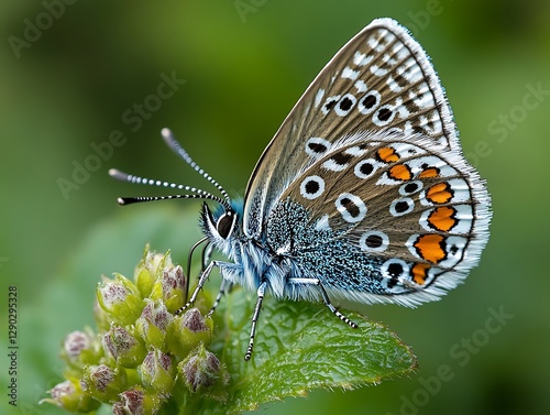 © Husna, Obraz premium Blue Butterfly on a Leaf