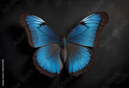 © Lied, Fototapeta premium Blue butterfly on dark surface, black background