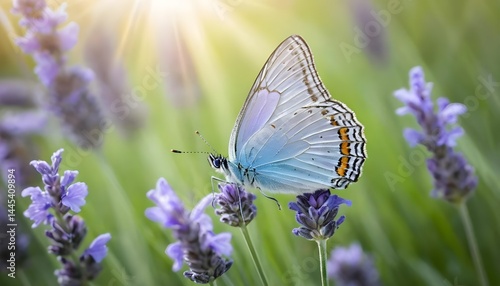 © ลลิดา ไชยศรีษะ, Naklejka premium Blue Butterfly on Lavender in Sunlight