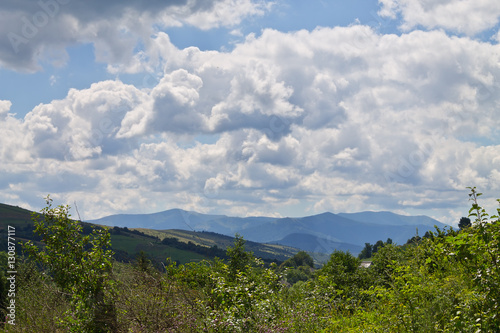 Naklejka premium Blue Carpathian Mountains on the horizon