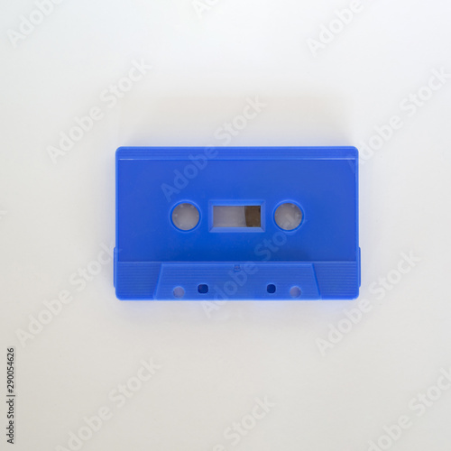 © Freepik, Obraz premium Blue cassette tape top view close-up shot