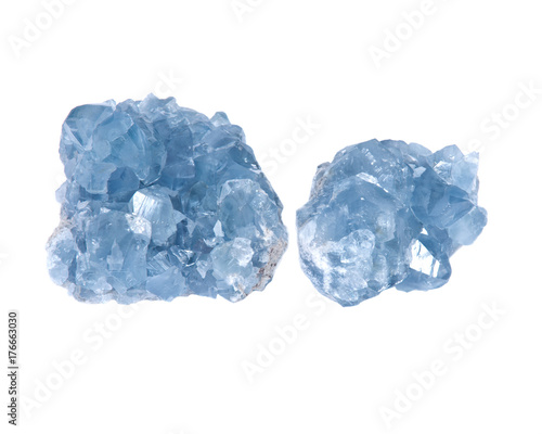 © bjphotographs, Obraz premium Blue celestite cluster isolated on white background