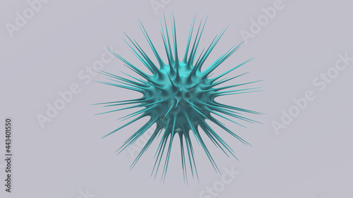 © dinachi, Obraz premium Blue cell. Gray background. Virus concept. Abstract illustration, 3d render.
