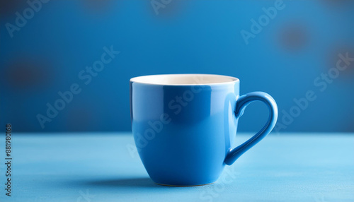Obraz premium Blue ceramic cup against blue backdrop. Drink ware. Mug for hot beverage....