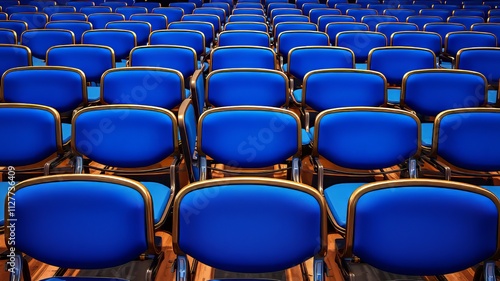 © Adisorn, Fototapeta premium Blue Chairs Row - Modern Design, Bright, Professional Photography