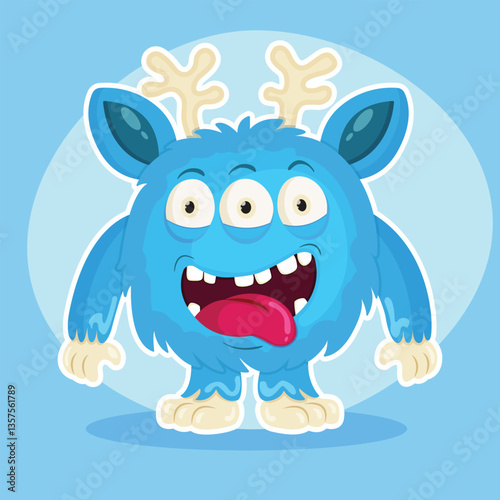 © Roman, Fototapeta premium Blue cheerful cartoon monster. Vector illustration