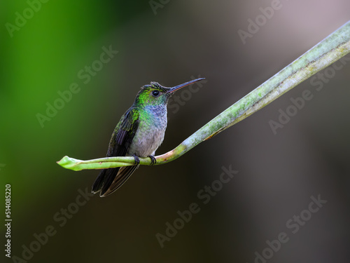 © FotoRequest, Fototapeta premium Blue-chested Hummingbird on green plant against green background