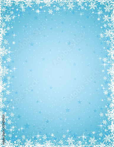 © sunnyfrog, Fototapeta premium Blue christmas background with frame of white snowflakes, vector illustration