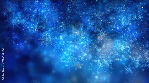© Pat, Fototapeta premium Blue Christmas background with snowflakes