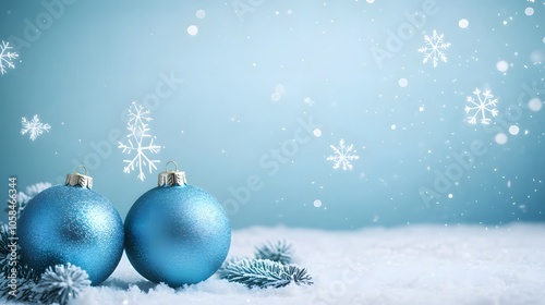 Fototapeta premium blue christmas background with snowflakes and christmas balls