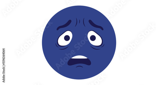 Fototapeta premium Blue Circle Emoji Depicting Shocked Worried Expression.