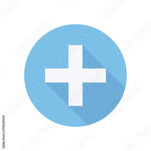 Obraz premium Blue Circle Plus Sign Flat Icon with Long Shadow