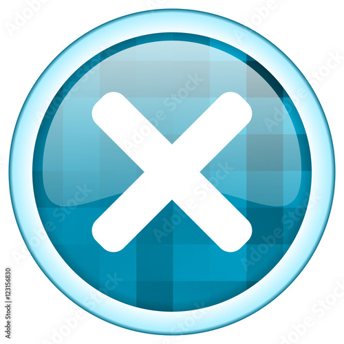 © Alex White, Obraz premium Blue circle vector x icon. Round internet glossy cancel button. Web design graphic element.