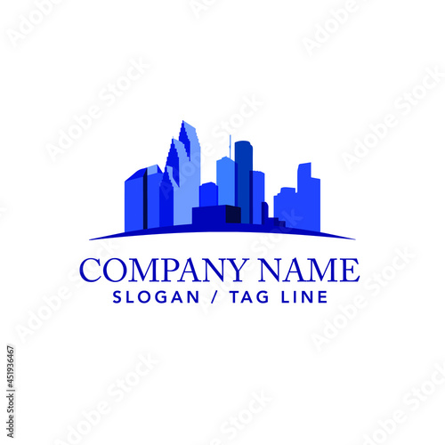 Fototapeta premium Blue City Skyline with Buildings Logo