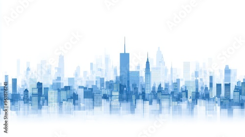 © Narongsag, Fototapeta premium Blue Cityscape Skyline Illustration Modern Architecture Skyscrapers Urban Design