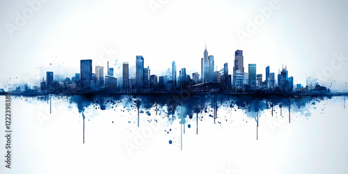 Naklejka premium Blue Cityscape Watercolor Skyline Print
