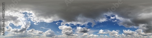 Obraz premium blue clear sky hdri 360 panorama with ???? clouds with zenith for use in 3d...