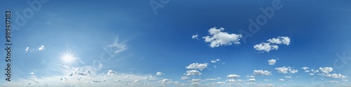 Fototapeta premium blue clear sky hdri 360 panorama with white clouds with zenith for use in 3d graphics as sky dome or edit drone shot as sky replacement