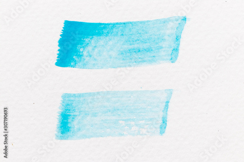 Fototapeta premium Blue color watercolor handdrawing as line brush on white paper background