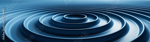 Obraz premium Blue concentric circles expanding on a liquid surface.