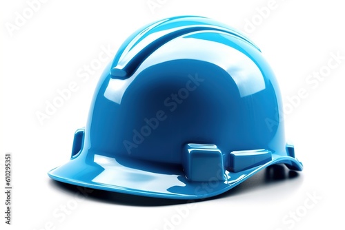 Fototapeta premium blue construction hard hat isolated on white background. Generated by AI.