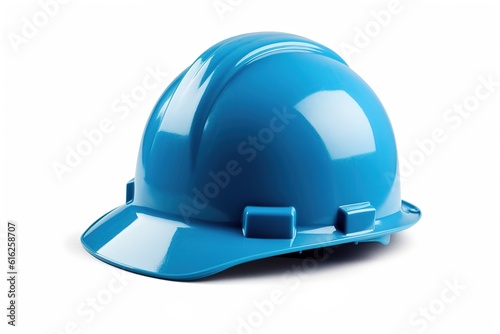 Fototapeta premium blue construction hard hat isolated on white background. Generated by AI.