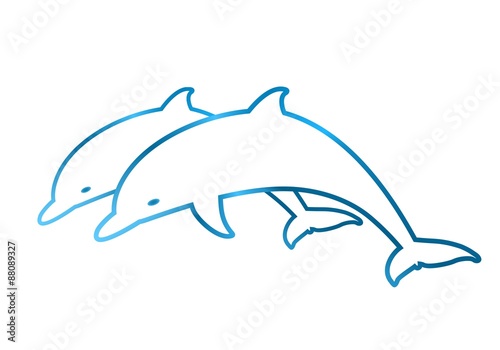 Fototapeta premium Blue contour two leaping dolphins on a white background