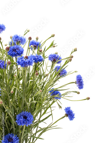 © Natika, Fototapeta premium Blue Cornflower Herb or bachelor button flower bouquet isolated