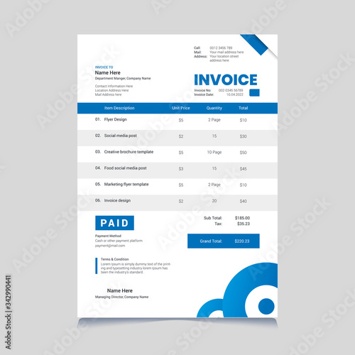 © Rashedul, Fototapeta premium Blue corporate modern invoice template