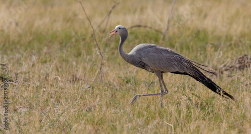 Obraz premium Blue Crane in the Savannah of Etosha, a National Park of Namibia