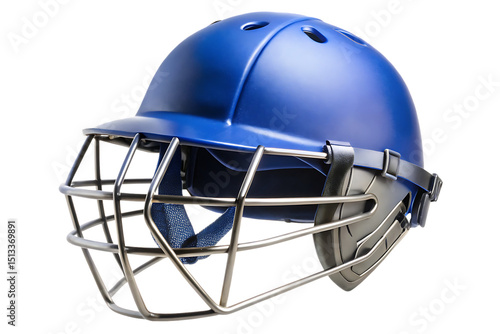 © jhon, Naklejka premium blue cricket helmet with protective grill isolated on a white background PNG. GENERATIVE AI